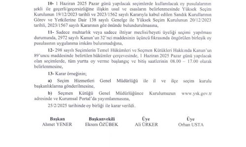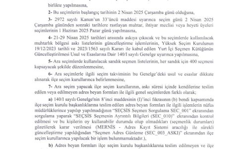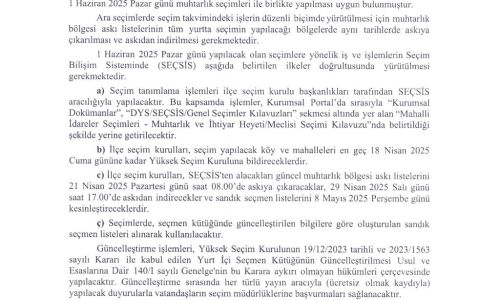 06 Nisan 2025 tarihinde yapılacak olan Alanyurt Mahallesi Muhtarlık ve İhtiyar Heyeti Ara Seçimleri