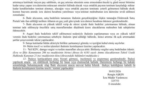 İCRA DAİRESİ TAŞINIR ELEKTRONİK SATIŞ ORTAMINDA AÇIK ARTIRMA İLANI -8