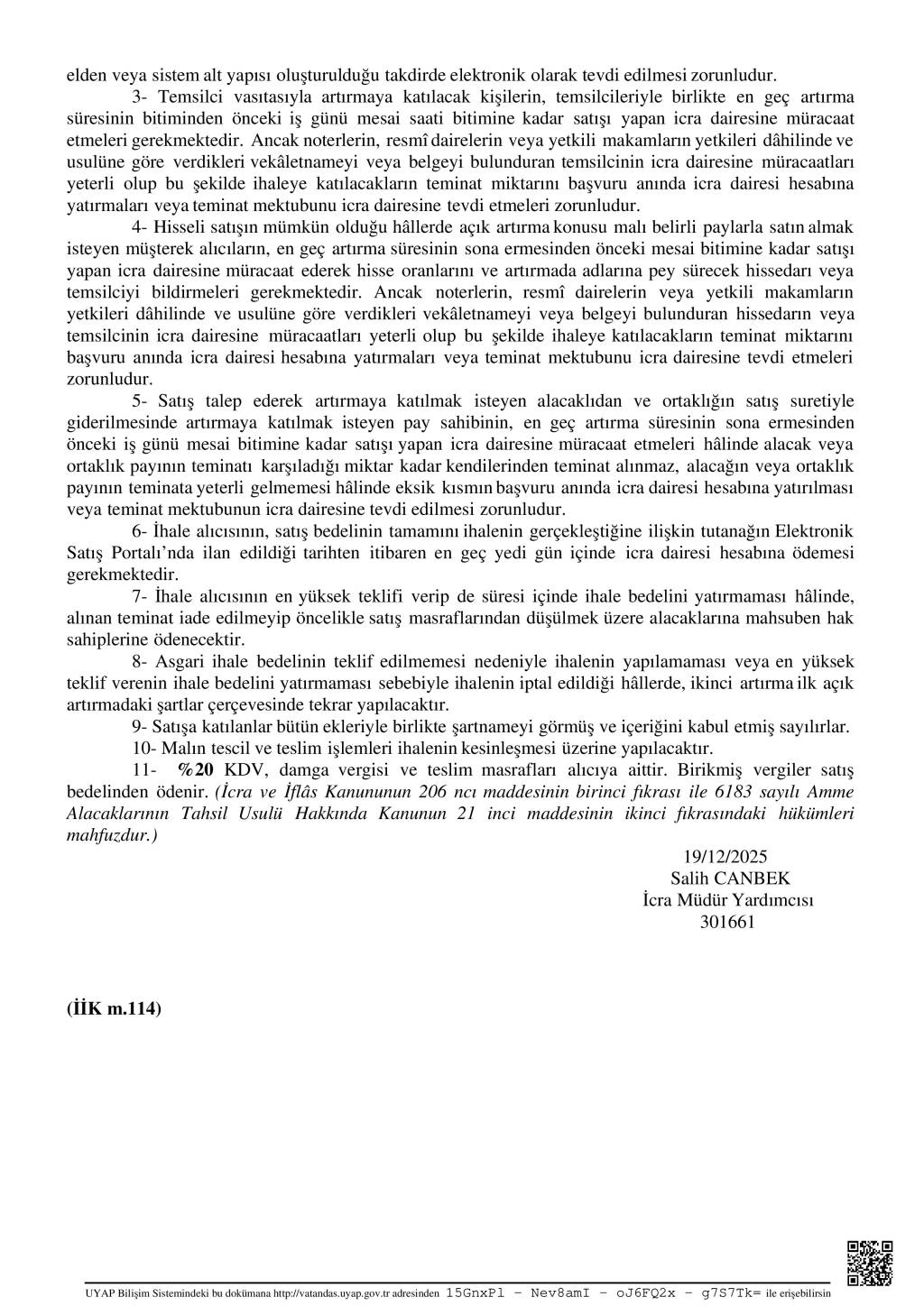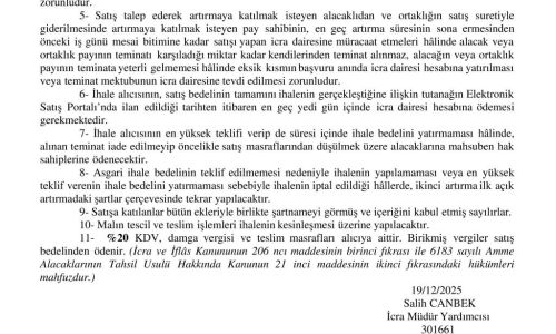 İCRA DAİRESİ TAŞINIRIN ELEKTRONİK SATIŞ ORTAMINDA AÇIK ARTIRMA İLANI-25