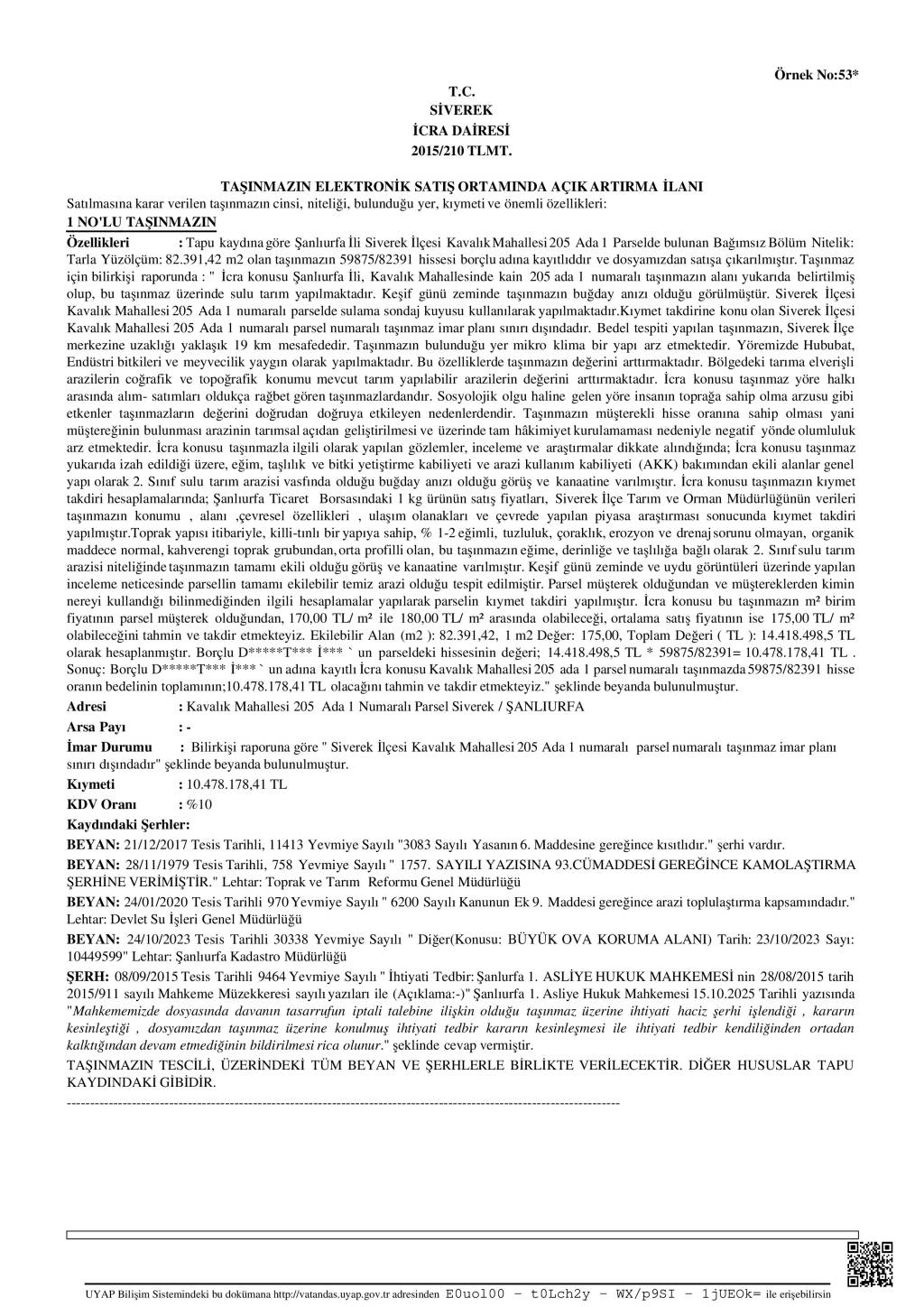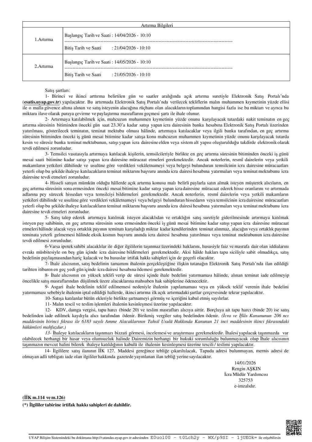 İCRA DAİRESİ TAŞINMAZIN ELEKTRONİK SATIŞ ORTAMINDA AÇIK ARTIRMA ILANİ -01