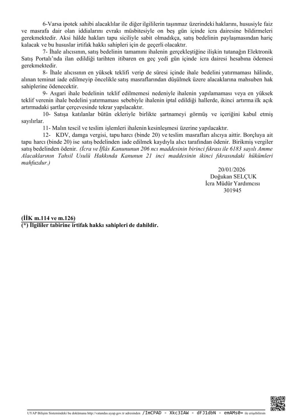 İCRA DAİRESİ TAŞINMAZIN ELEKTRONİK SATIŞ ORTAMINDA AÇIK ARTIRMA ILANİ -02