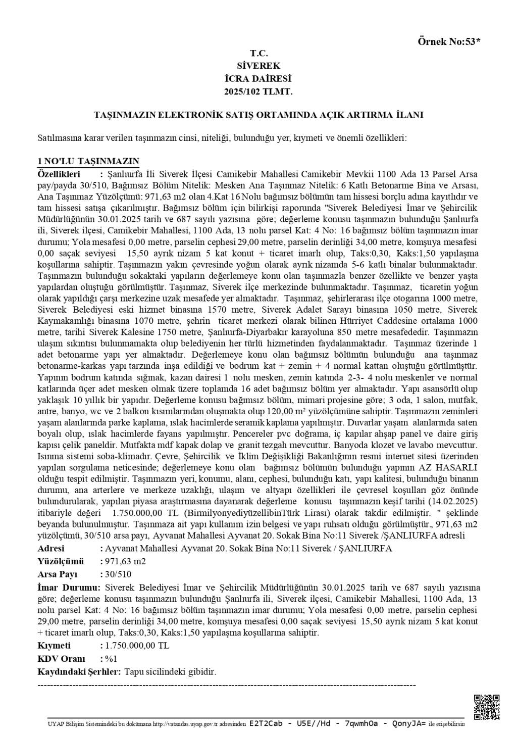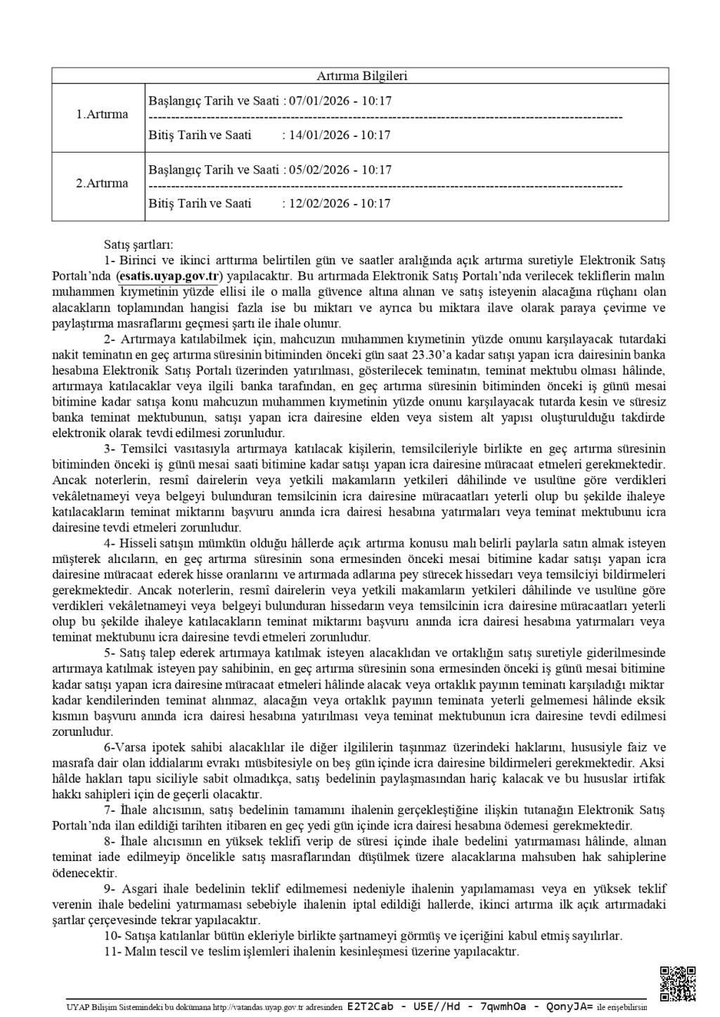 İCRA DAİRESİ TAŞINMAZIN ELEKTRONİK SATIŞ ORTAMINDA AÇIK ARTIRMA ILANİ -16