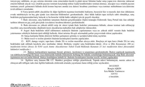İCRA DAİRESİ TAŞINMAZIN ELEKTRONİK SATIŞ ORTAMINDA AÇIK ARTIRMA ILANİ -26