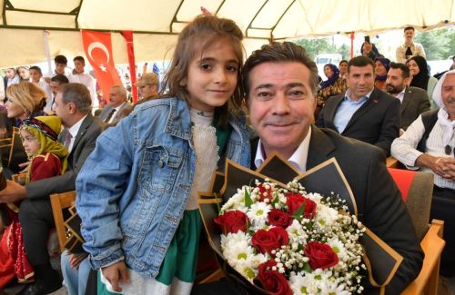Siverek Belediye Başkanı Ali Murat Bucak Sanatçı Gülben Ergen'in destekleriyle Karakeçi kırsal Mahallesi'nde yapılan anaokulunun açılışına katıldı.
