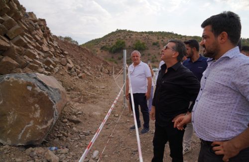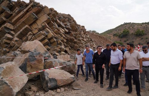 Siverek Belediye Başkanı Ali Murat Bucak, bazalt sütunların bulunduğu bölgelerde incelemelerde bulundu.