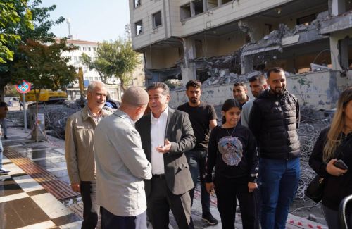 Siverek Belediye Başkanı Ali Murat Bucak, 6 Şubat depreminde ağır hasarlı olan belediye hizmet binasının kontrollü yıkım çalışmalarında incelemelerde bulunarak çalışmaları hakkında ekiplerden bilgi aldı.