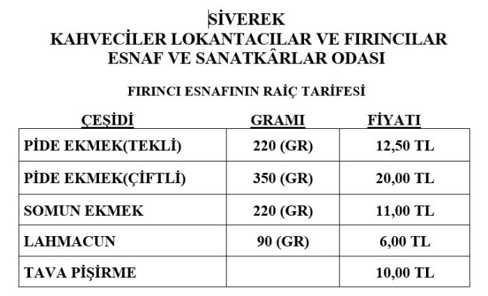 Bucak’ın girişimiyle yapılan görüşmeler sonucunda, 220 gramlık tekli pide ekmeğin fiyatı 12,5 TL, 350 gramlık çiftli ekmek 20 TL, 220 gramlık somun ekmek ise 11 TL olarak güncellendi.