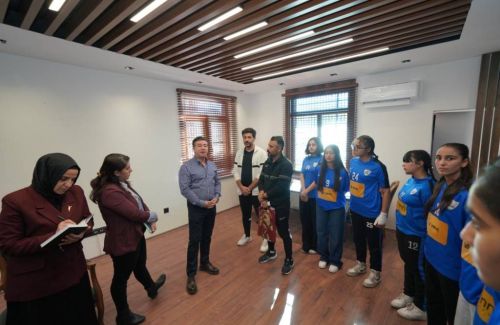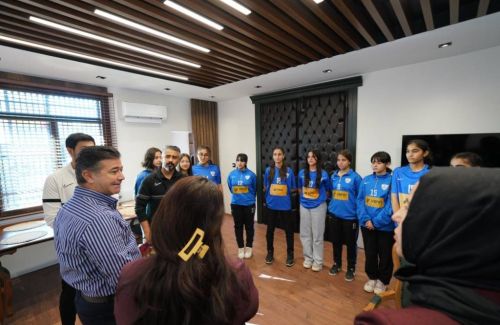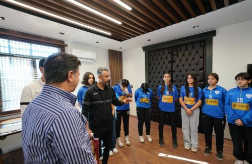 Kadın sporcularla bir süre sohbet eden Bucak, teknik sorumlu Emrah Altundal ve kaleci antrenörü Sedat Gökhan'dan bilgi aldı.