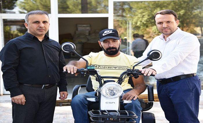 Başkan Ali Murat Bucak’ın talimatı üzerine harekete geçen Sosyal Yardım İşleri Müdürlüğü, yürütülen proje kapsamında Erdal Özbay’a elektrikli motosiklet hediye etti.