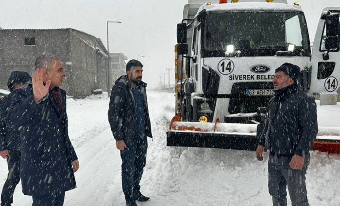 Siverek Belediye Başkan Vekili Cumali Bayram, karla mücadele kapsamında yürütülen çalışmaları yerinde inceleyerek ekiplerden bilgi aldı.
