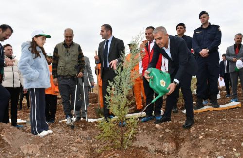 Zeytin, fıstık ve çamdan oluşan 600 fidanın toprakla buluşturulduğu etkinlikte ağaçlandırmanın önemine vurgu yapıldı.