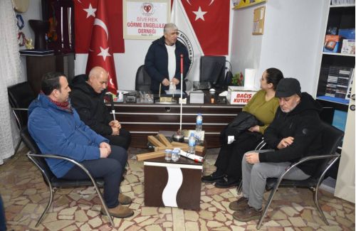 Belediye Başkan Yardımcısı Evrim Began ile Sosyal Hizmetler Müdürü Tarık Kızılkeçi, dernek binasında Görme Engelliler Derneği Başkanı Mehmet Canlı ve dernek üyeleriyle bir araya geldi.