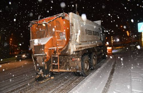 Belediyemiz Fen İşleri Müdürlüğü ekipleri, akşam saatlerinde etkisini arttıran kar yağışıyla beraber kar küreme ve tuzlama çalışmalarına başladı.