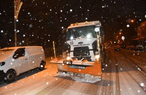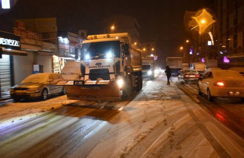 “Etkili olan kar yağışıyla birlikte ekiplerimiz hızlı bir şekilde sahada görev alarak ana arterler ile trafiğin yoğun olduğu cadde ve bölgelerde temizlik ve tuzlama çalışmalarına başlamıştır. Hava şartları ve kar yağışının durumuna göre ekiplerimiz 7/24 sahada çalışmalarını sürdürecektir.”