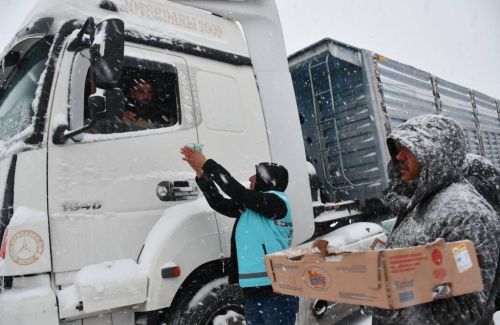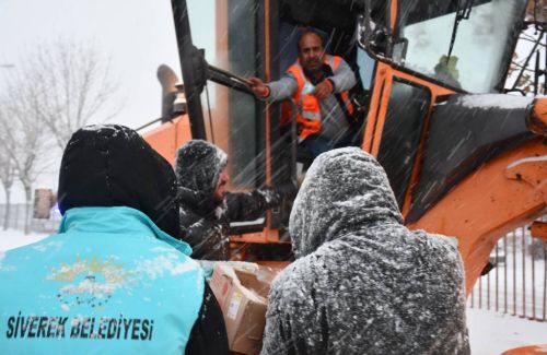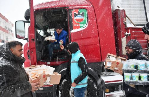 Siverek Belediyesi Sosyal Hizmetler Müdürlüğü ekipleri, yoğun kar yağışının ardından yolda kalan sürücülere ikramlarda bulundu.