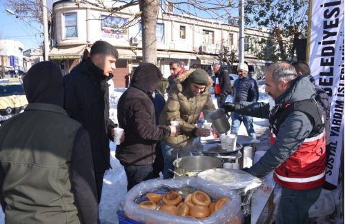 Kar yağışının devam ettiği süreçte ve sonrasında ikramlarını sürdüren belediye ekipleri, 3 gün boyunca 18 noktada vatandaşlara çorba, sandviç ve lahmacun dağıttı.