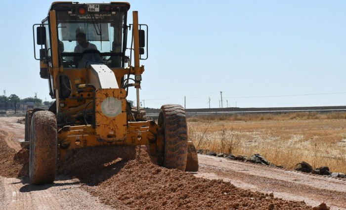 Şanlıurfa Karayolu ile Karakoyun Mahallesi ve çevre köyleri birbirine bağlayan yolun altyapısı, asfalt öncesi hazırlık kapsamında malzeme serimi, silindir ile sıkıştırma ve sulama çalışmalarıyla güçlendiriliyor.