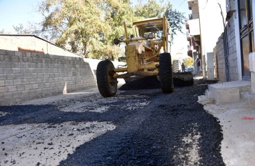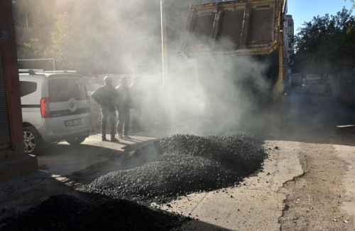 İlçe merkezinde yürütülen üst yapı çalışmaları kapsamında ilçenin Ayvanat Mahallesinde bulunan ve deforme olan yolları sıcak asfaltla kapatarak mahalle sakinlerinin hizmetine sunuyor.