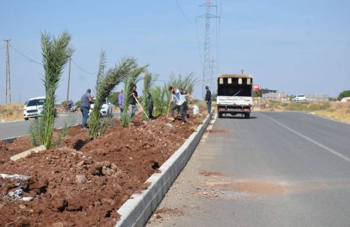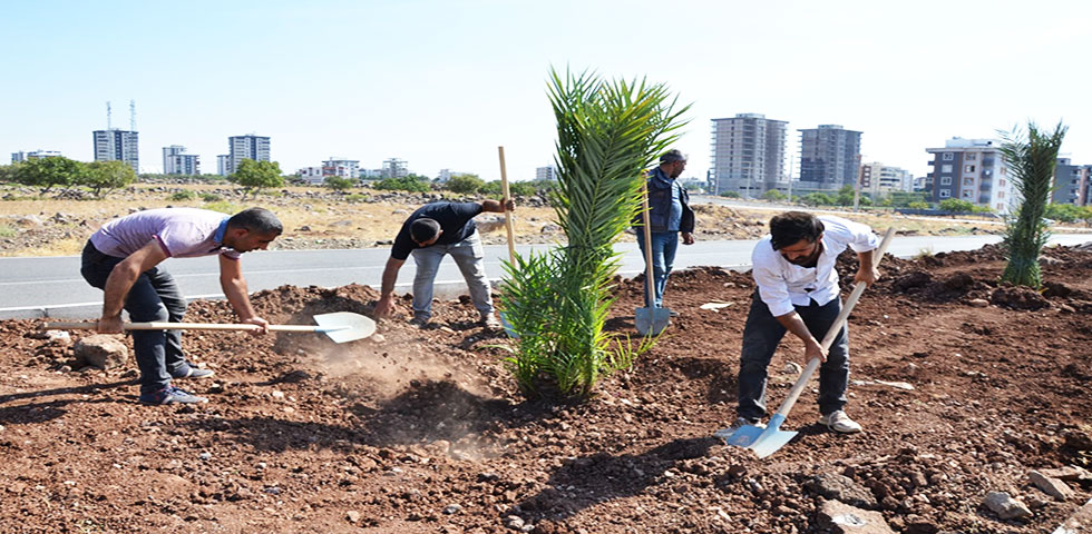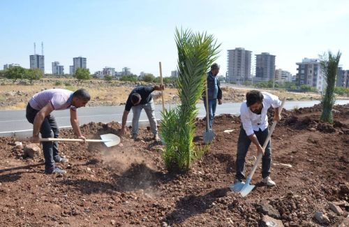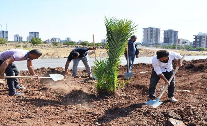 Siverek Belediyesi ilçede meyve ağacı sayısının arttırılmasına yönelik proje kapsamında refüjlerde Medine hurması dikimine başladı.