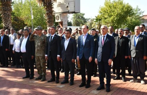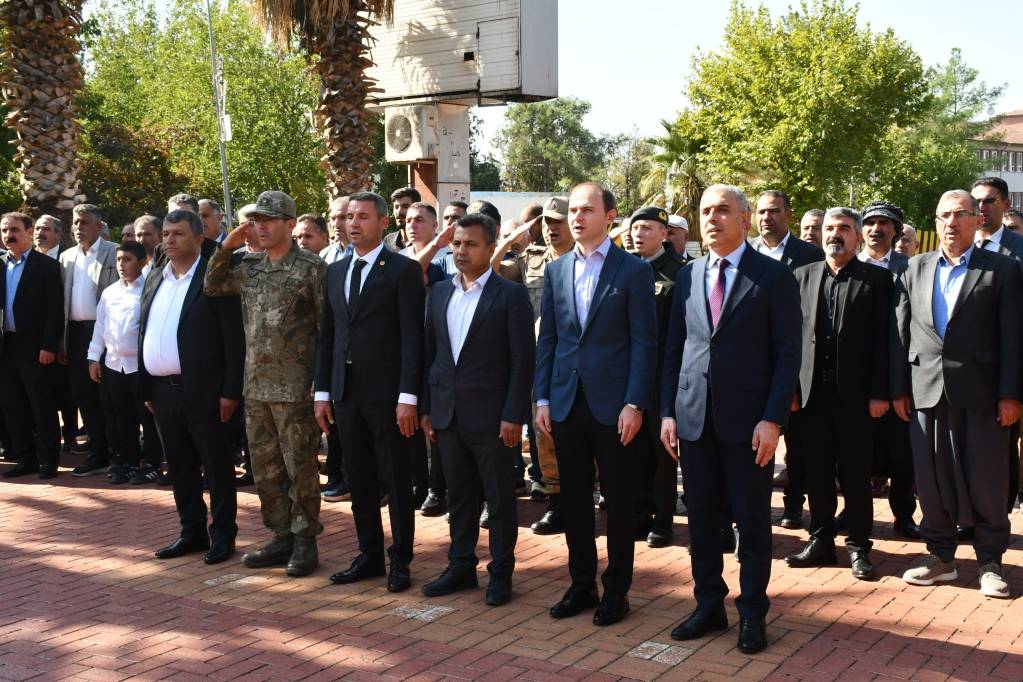 Etkinlik, Atatürk Anıtı’na Muhtarlar Derneği tarafından çelenk sunulması, ardından saygı duruşu ve İstiklal Marşı’nın okunmasıyla başladı.