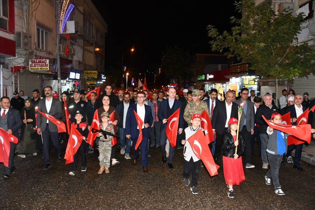 Siverek Kaymakamlığı ile Siverek Belediyesi iş birliğiyle 29 Ekim Cumhuriyet Bayramı etkinlikleri kapsamında Fener Alayı yürüyüşü düzenlendi.