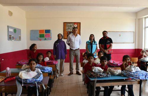 Ekipler, kırsal ve merkez okulları ziyaret ederek öğrencilere defter, kalem, silgi ve çeşitli eğitim materyallerinin bulunduğu çantaları hediye etti.