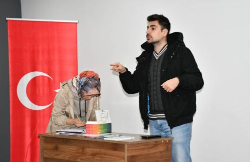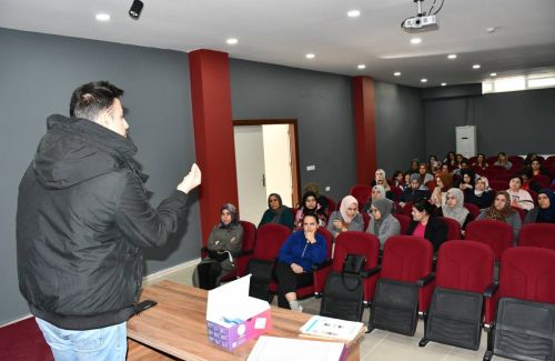 İlçe sağlık müdürlüğünce görevlendirilen Dr. Mehmet Can kadınlara meme ve rahim kanserine yönelik eğitim verdi.