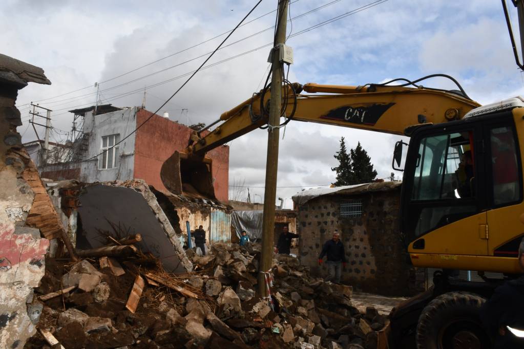Yıkım öncesinde, metruk yapı sahiplerinden alınan yazılı onayın ardından tehlike arz eden ve kısmi çökme yaşanan yapılar ekipler tarafından kontrollü olarak yıkılıyor.