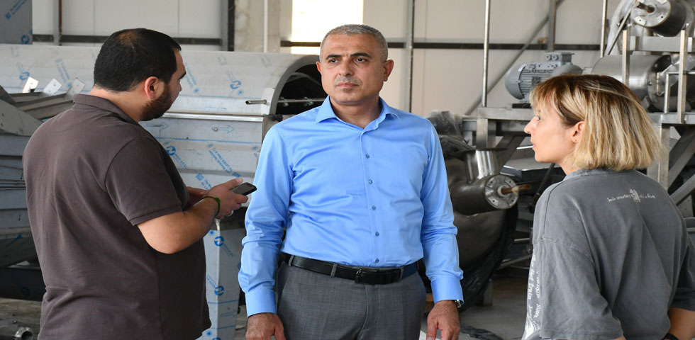 Başkan Yardımcısı Cumali Bayram çalışmaların sürdüğü Salça Fabrikasında incelemelerde bulanarak tesis hakkında bilgi aldı.