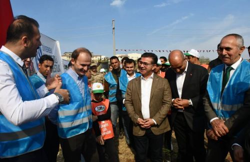 Program saygı duruşu ve İstiklal marşının okunmasının ardından katılımcılar fidanları toprakla buluşturarak can suyunu verdi.