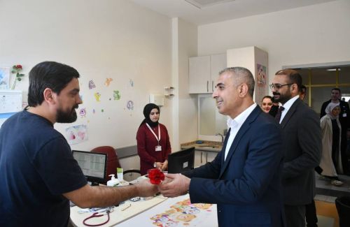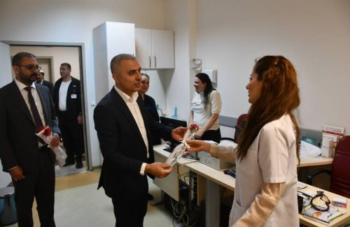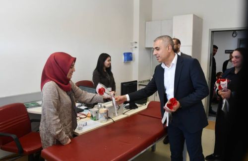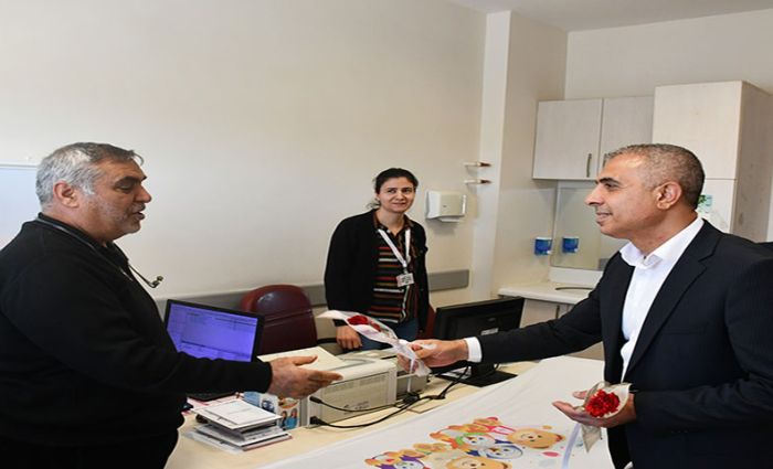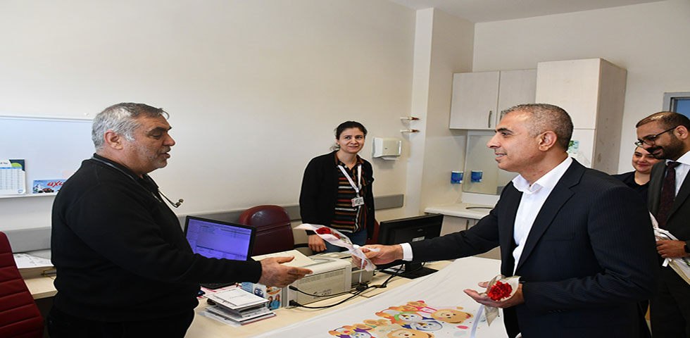 14 Mart Tıp Bayramı dolayısıyla hastanede görev yapan doktorları polikliniklerde ziyaret eden Başkan Vekili Cumali Bayram'a Hastane Başhekimi Ahmet Yiğitbay, Belediye Başkan Yardımcısı Evrim Began eşlik etti.