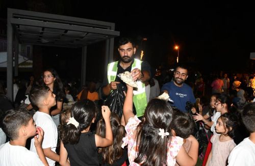 Çok sayıda ailenin katıldığı film gösterimi öncesi ekiplerce çocuklara patlamış mısır dağıtımı yapıldı.