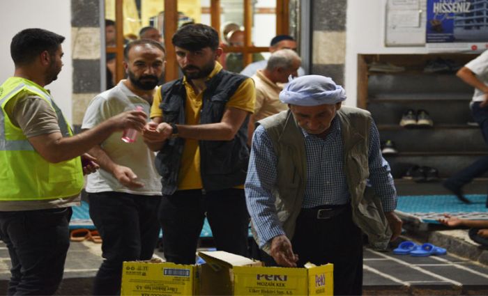 Siverek Belediyesi, Mevlit Kandili dolayısıyla cami cemaatine gül suyu ve lokum ikram etti.