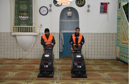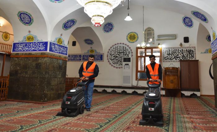 Temizlik İşleri Müdürlüğü ekiplerince yürütülen çalışmalar kapsamında ilçe genelindeki camilerde temizlik yapılıyor.