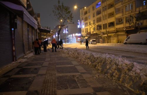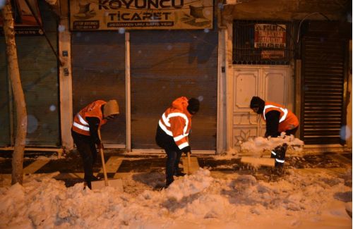 Bu kapsamda ana caddelerin kar nedeniyle kapanmaması için küreme çalışmaları devam ederken, kaldırım temizleme ve tuzlama çalışmaları da aralıksız sürdürülüyor.
