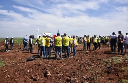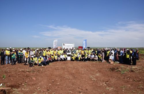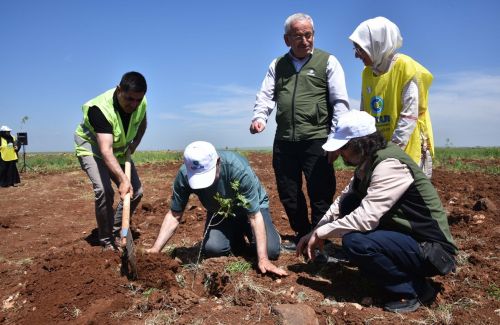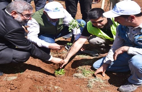 Fidan dikim törenine katılan davetliler, binlerce fıstık fidanını toprakla buluşturarak can suyu verdi.