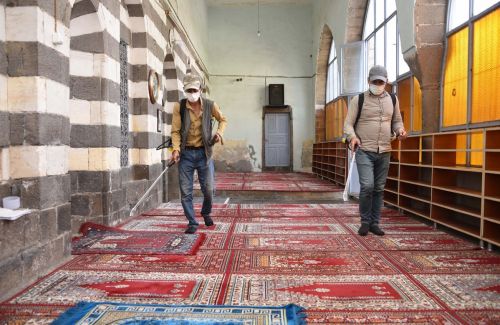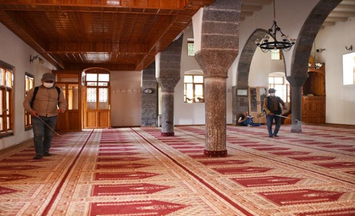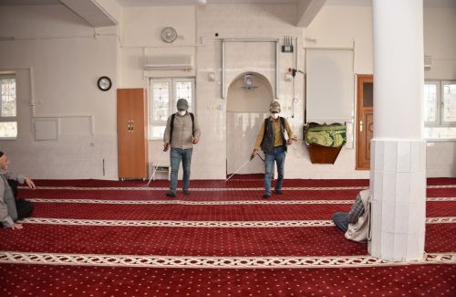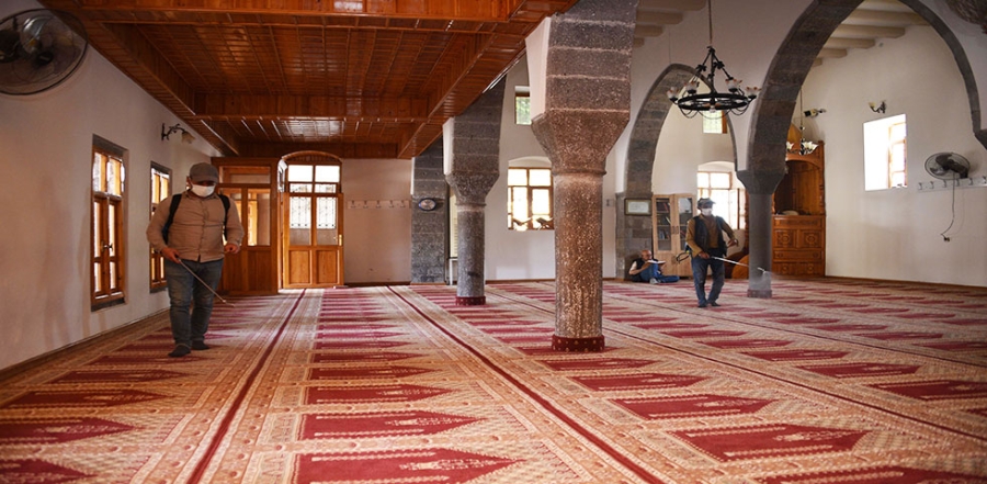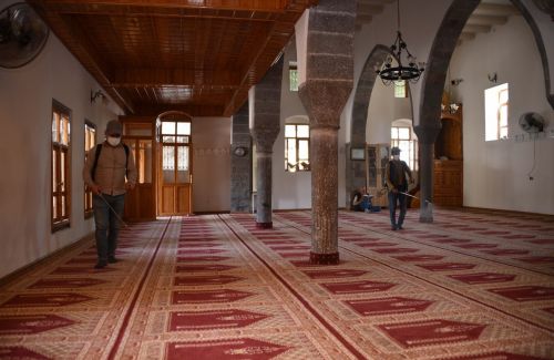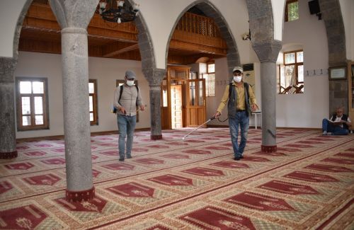 Temizlik İşleri Müdürlüğü ekiplerince tulumbalar yardımıyla camilerin iç bölmelerine gülsuyu sıkıldı. Bu uygulama ile camilerin temizliği ve hijyeninin sağlanması amaçlanıyor.