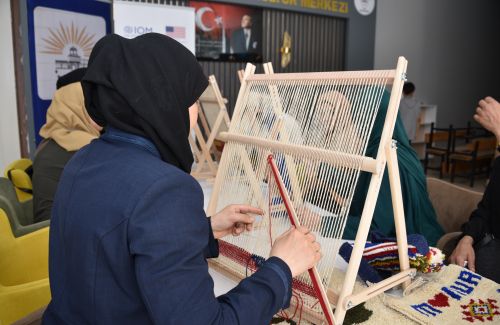 Halı dokuma, resim ve filografi kursuna katılan kadınlar, edindikleri mesleklerin ardından ev ekonomilerine de katkı sağlıyor.
