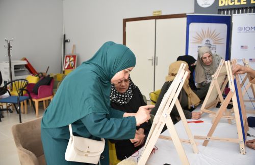 Kültür Müdürlüğü ve Göç İdaresi tarafından Dicle-Bağlar Kadın Kültür Merkezi’nde açılan kurslara katılan Suriyeli kadınlara mesleki eğitimler veriliyor.