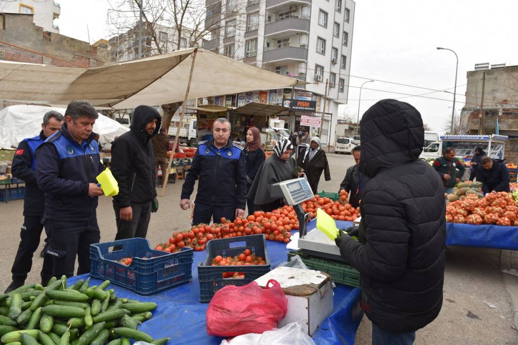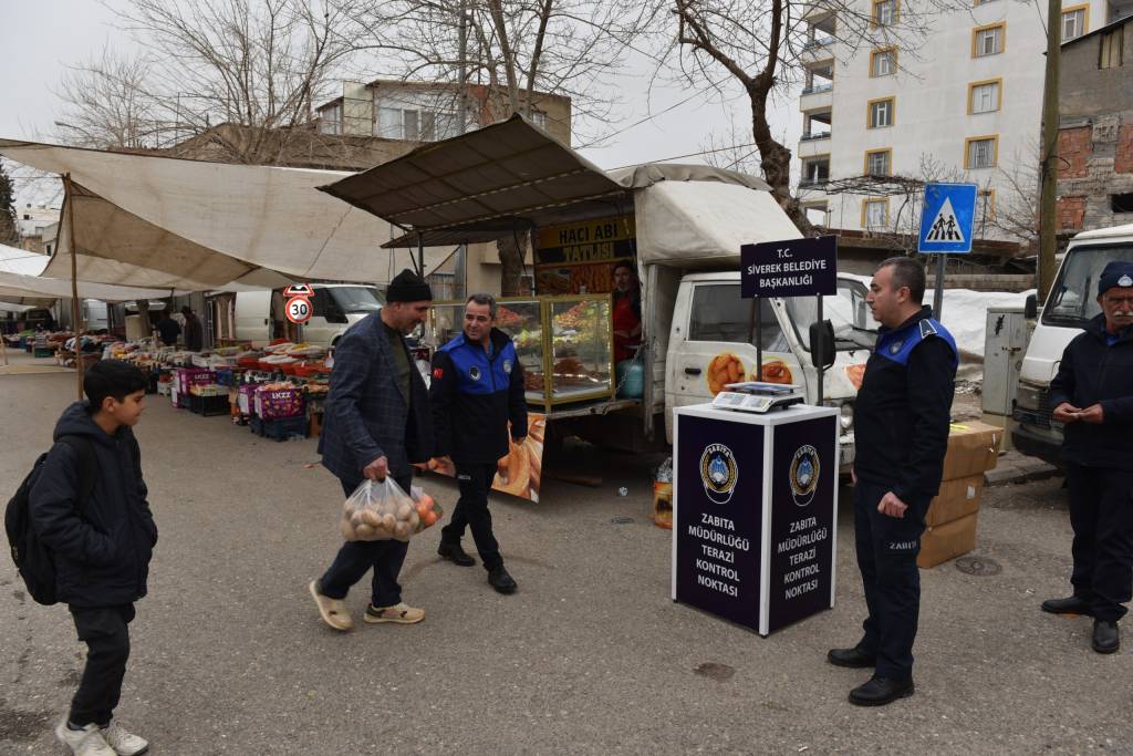 Ekipler ayrıca pazar girişine terazi kontrol noktası kurarak alışveriş yapan vatandaşların satın aldığı ürünleri belediyeye ait hassas terazilerde tartarak kontrol etti.