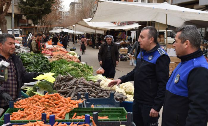 Zabıta Müdürlüğü, semt pazarı denetiminde satışı yapılan ürünlerde etiket kontrolü yaparak etiketi olmayan esnafa etiket dağıtımı yaptı.