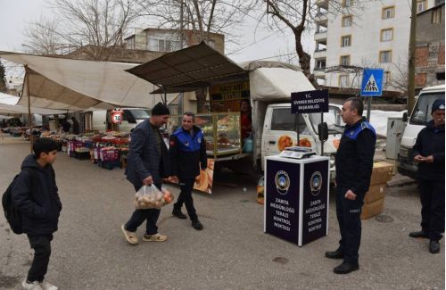 Pazarcı esnafı da etiket dağıtımından duydukları memnuniyeti dile getirerek zabıta ekiplerine teşekkür etti.