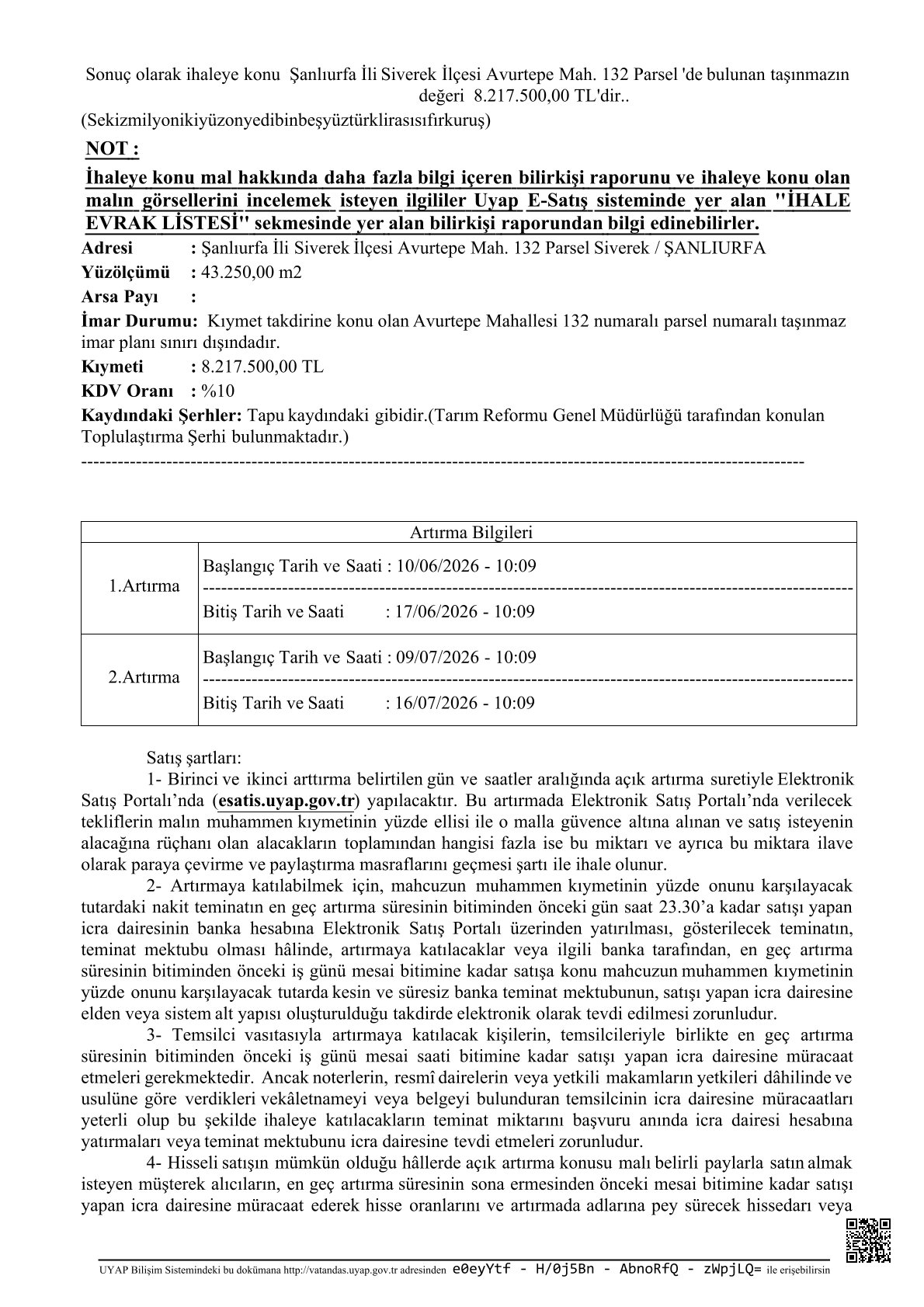 Siverek İcra Dairesi tarafından, 2025/787 TLMT. sayılı dosya kapsamında bir adet elektrik trafosunun satışı, elektronik ...