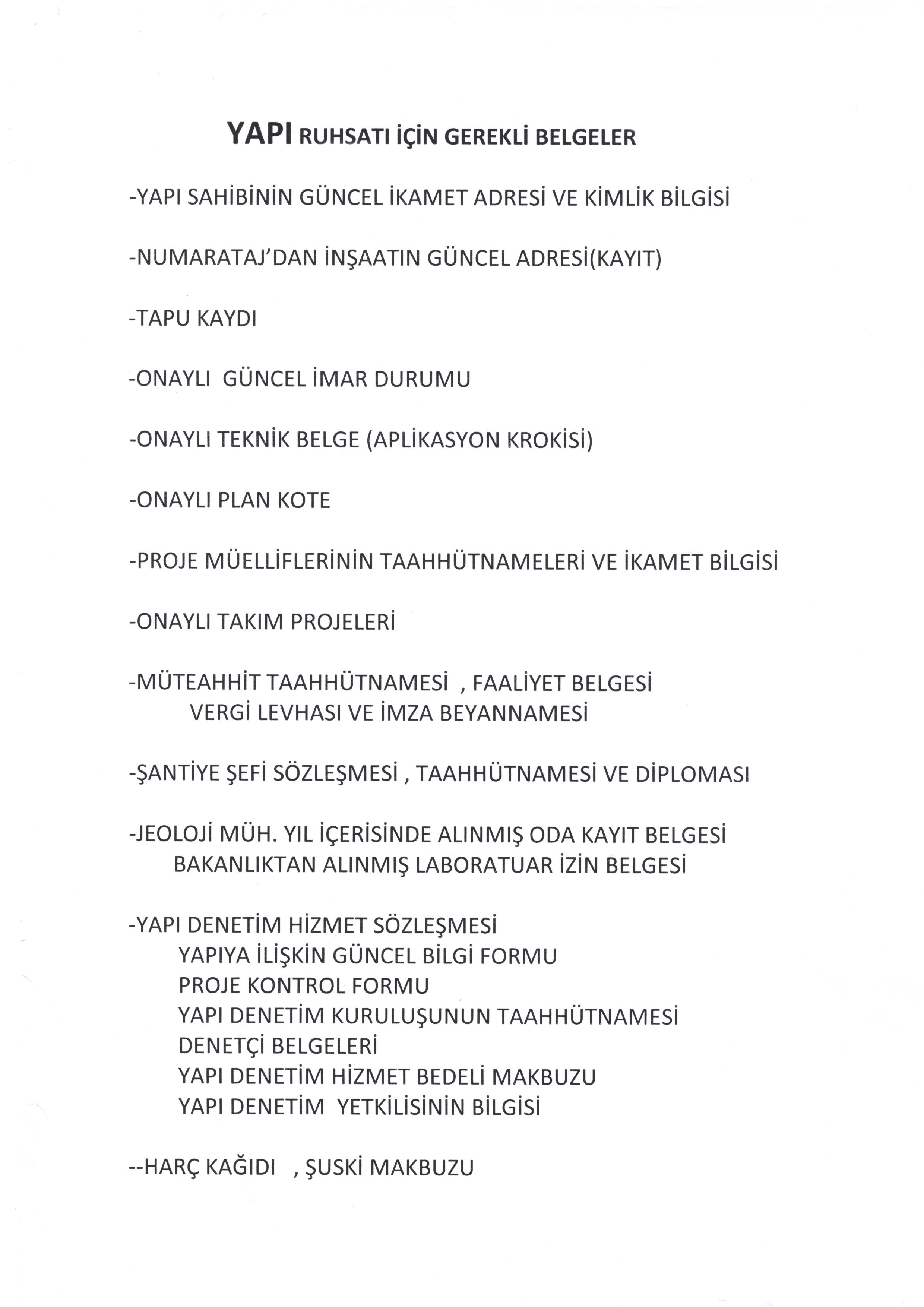 Yapı Ruhsatı İçin Gerekli Belgeler