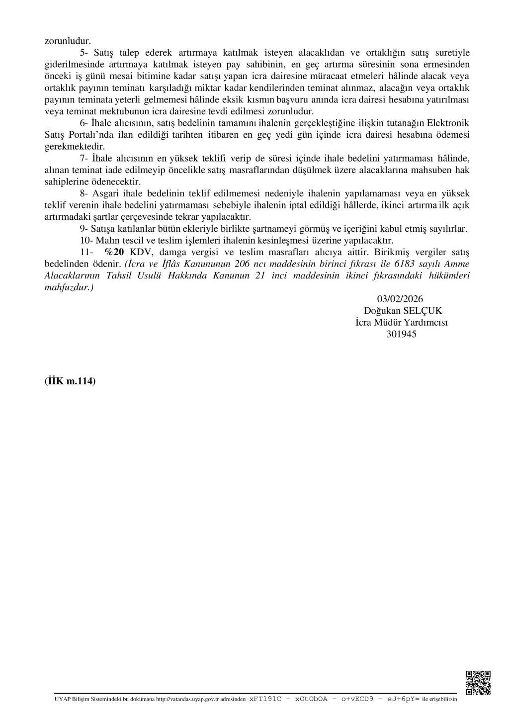 İCRA DAİRESİ TAŞINIRIN ELEKTRONİK SATIŞ ORTAMINDA AÇIK ARTIRMA İLANI-1