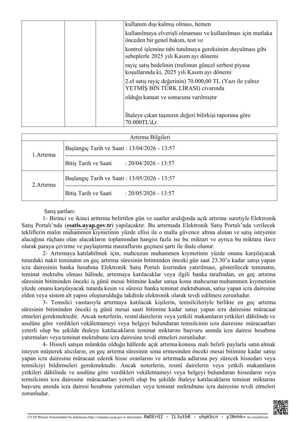 İCRA DAİRESİ TAŞINIRIN ELEKTRONİK SATIŞ ORTAMINDA AÇIK ARTIRMA İLANI-2