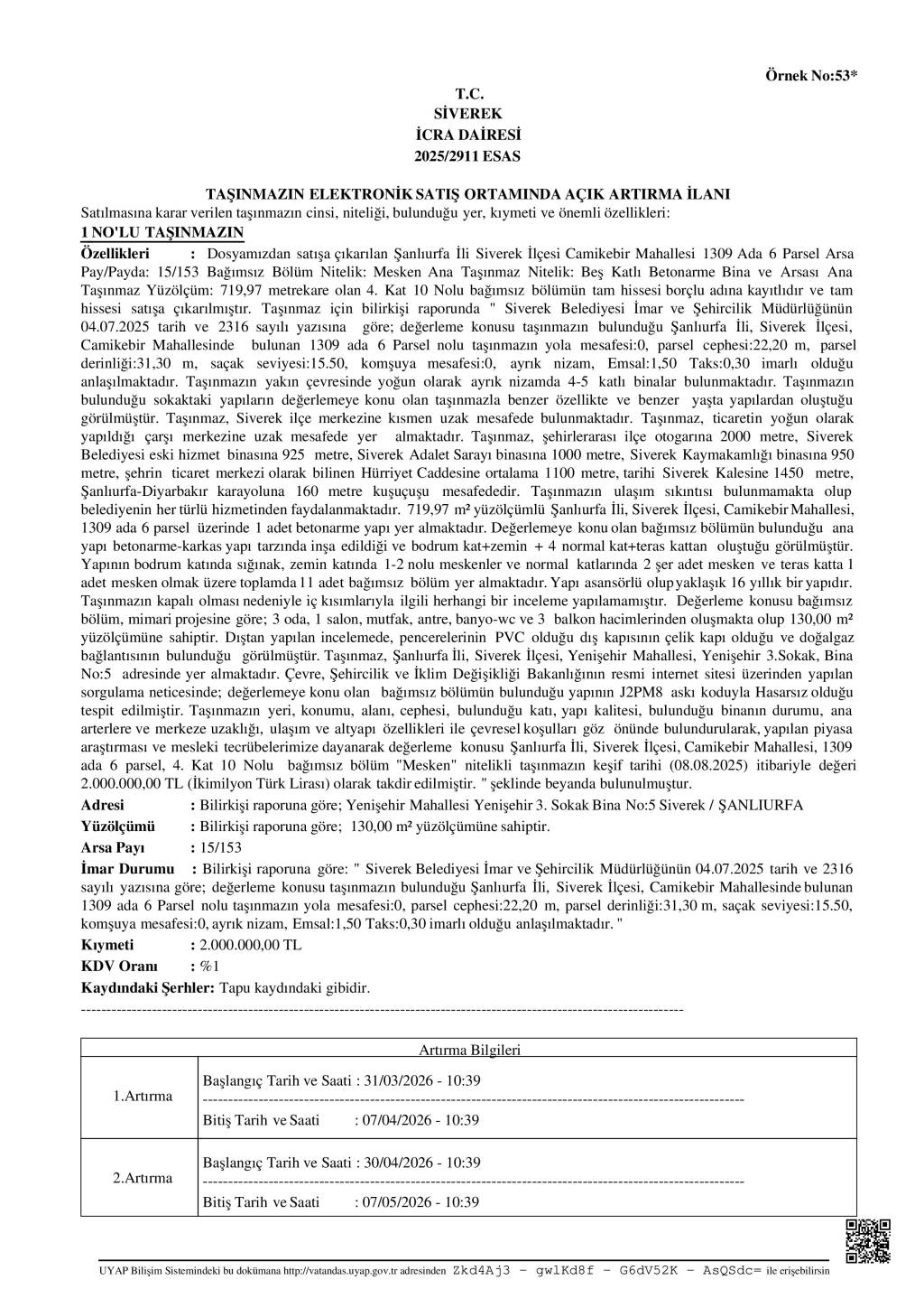 İCRA DAİRESİ TAŞINMAZIN ELEKTRONİK SATIŞ ORTAMINDA AÇIK ARTIRMA ILANİ -04