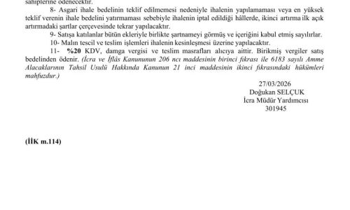 TAŞINIRIN ELEKTRONİK SATIŞ ORTAMINDA AÇIK ARTIRMA İLANI