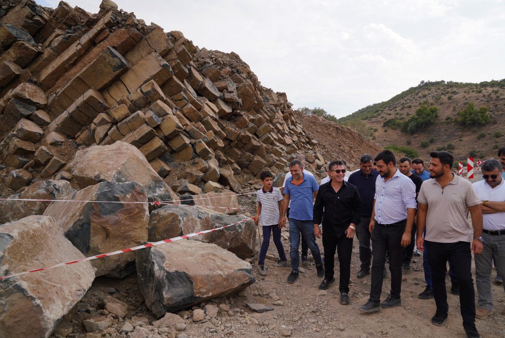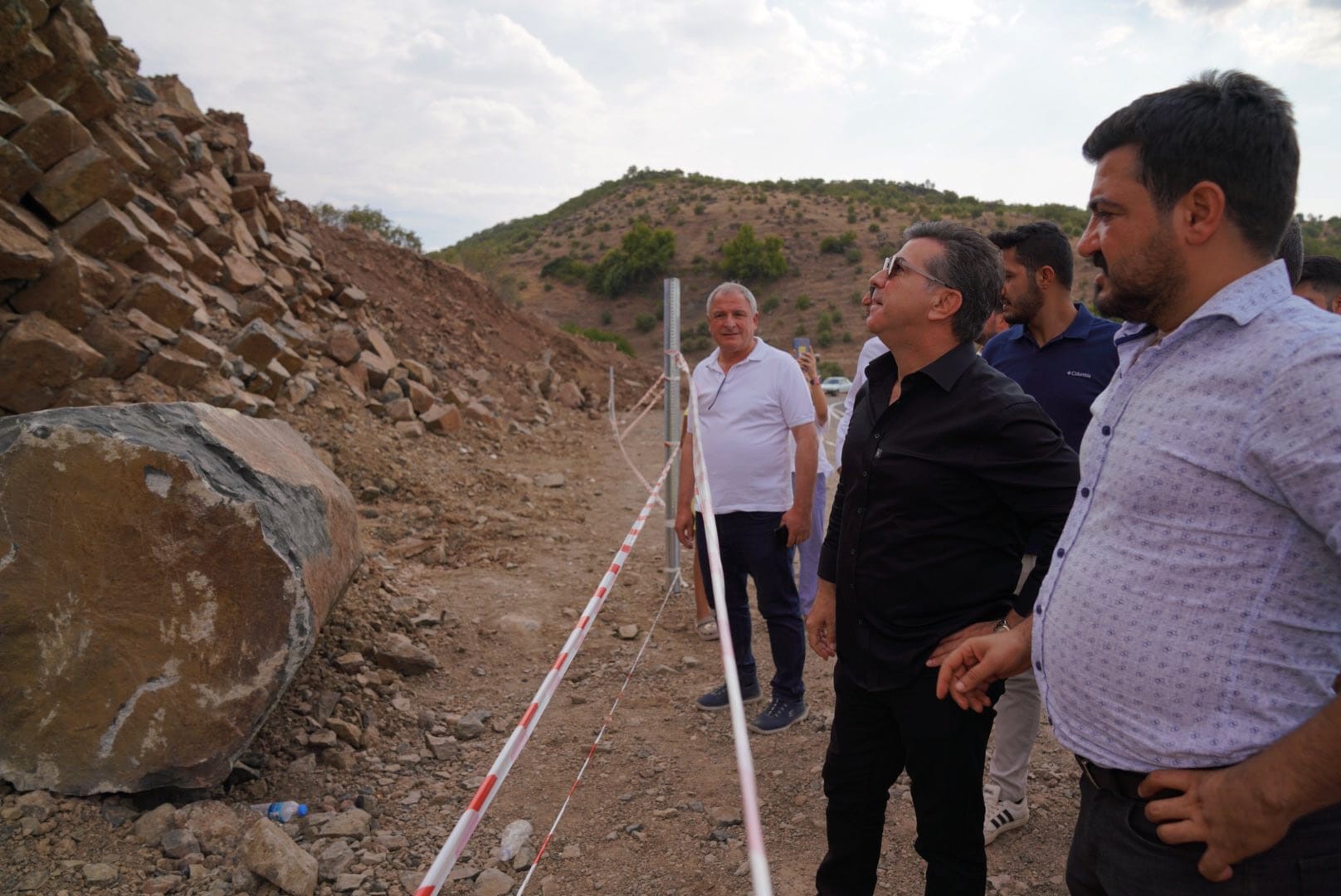 Siverek Belediye Başkanı Ali Murat Bucak, bazalt sütunların bulunduğu bölgelerde incelemelerde bulundu.