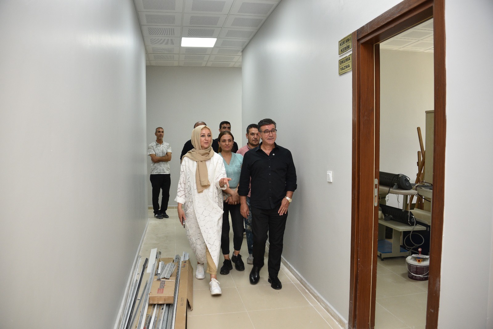 Dicle-Bağlar Kadın Kültür Merkezi ve Gastronomi Merkezinde yürütülen çalışmaları inceleyen Bucak, çalışmalar hakkında bilgi aldı.